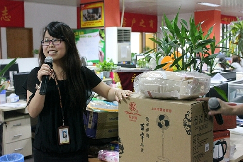 最后的抽獎環(huán)節(jié),主持人在介紹獎品。