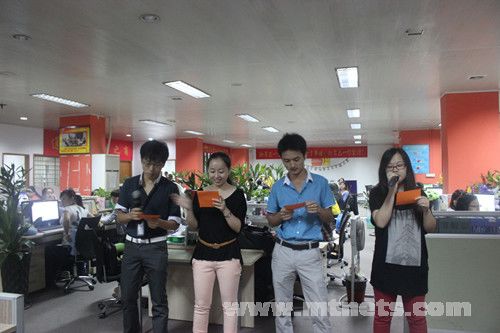 早會在公司四位員工的歌聲《明天會更好》中濃情開場。四位伙伴分別來自不同的部門和崗位,同時也是新老員工的代表。早會上,陳勝明總經(jīng)理也發(fā)表感言,回顧過去,暢談未來,讓所有興旺寶人相信:公司的明天會更加美好。