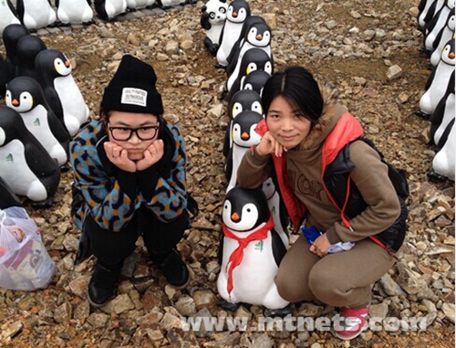 萌萌的企鵝自然吸引我們的女生忍不住來賣個萌,不過,這兩位看的鏡頭好像不一樣噢~~