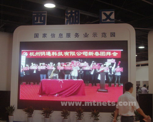 西湖區(qū)主題館大屏幕播放明通公司宣傳片