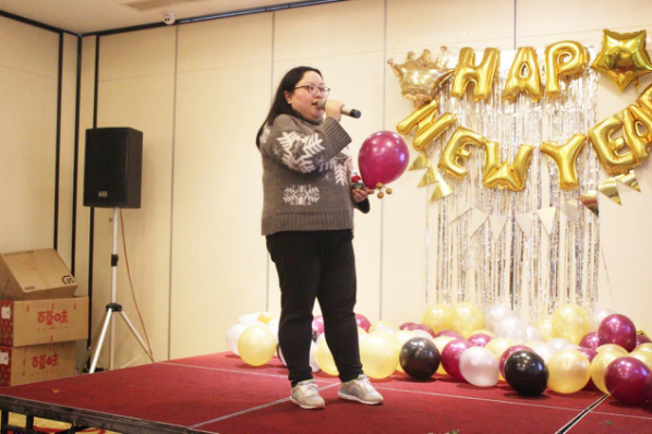 隨后,明通乒乓球比賽亞軍黃麗梅帶來(lái)了歌曲《房間》,充分證明了什么才是真正的文體兩開(kāi)花。