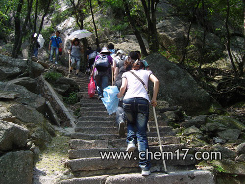經(jīng)過北海賓館,幾副領(lǐng)導(dǎo)的巨幅圖畫矗立,一看就不是平凡人能進入的領(lǐng)地,大家輕松的談?wù)撝绱税嘿F的賓館值不值得,各持己見。外面的空地上已經(jīng)搭起了不少帳篷,席地而臥的驢友們裝備齊全地準(zhǔn)備起來。腿腳開始不聽使喚,不停地有人詢問導(dǎo)游還有多久能到達光明頂。