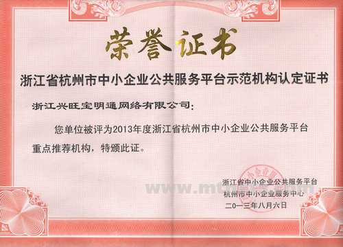 2013年度浙江省杭州市中小企業(yè)公共服務(wù)平臺重點推薦機構(gòu)頒獎