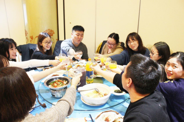吃固然重要,但酒杯交碰產(chǎn)生的清脆響聲,伴隨著歡聲笑語(yǔ),承載著朋友間的美好祝福。在這個(gè)餐桌上,我們可以暫時(shí)放下工作的忙碌,與小伙伴閑聊扯談,從日常部門小八卦聊到娛樂(lè)段子冷笑話,有時(shí)候還能看到熟悉的那個(gè)他或者她不為人知的可愛(ài)面哦。